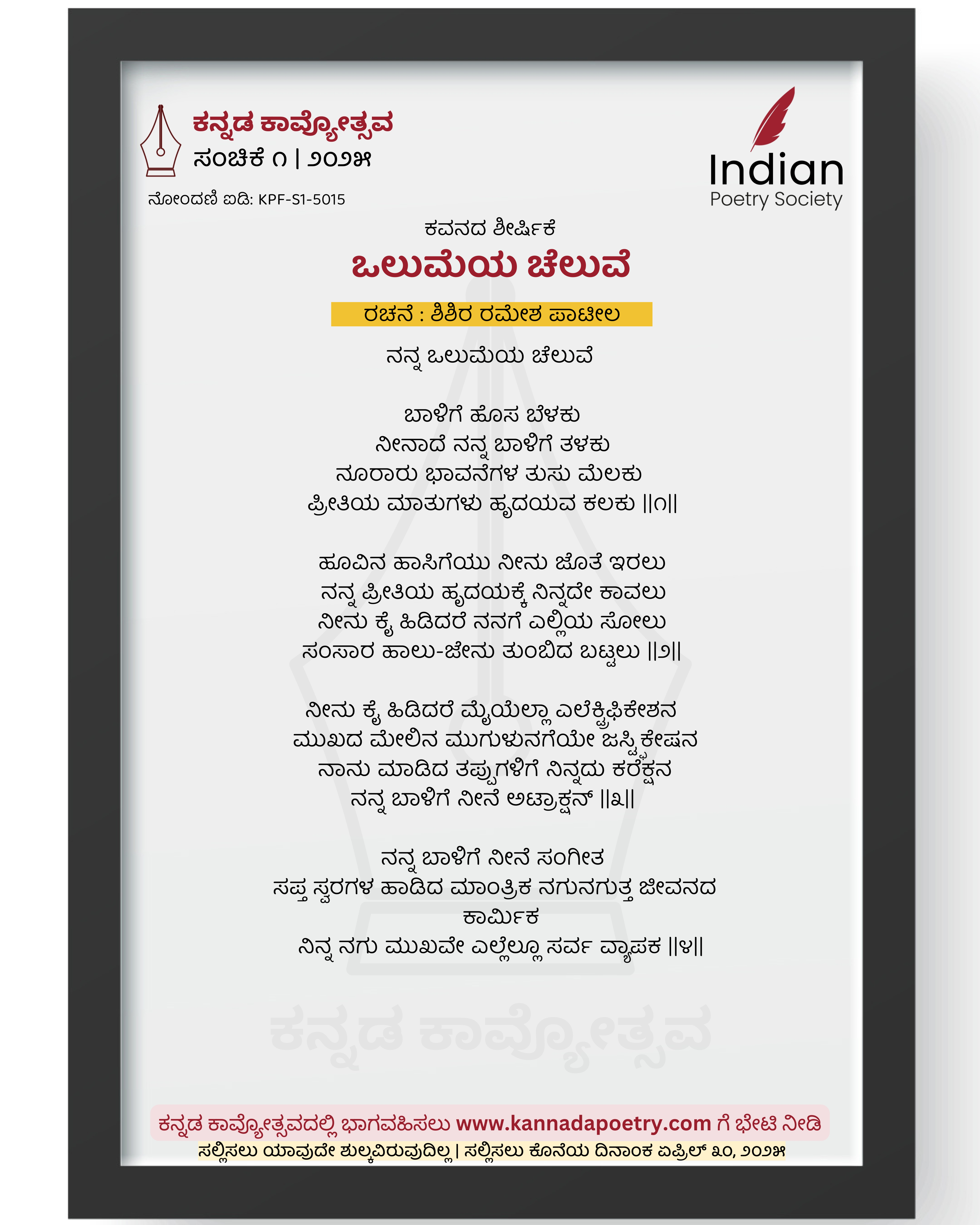 ರಚನೆ : ಶಿಶಿರ ರಮೇಶ ಪಾಟೀಲ