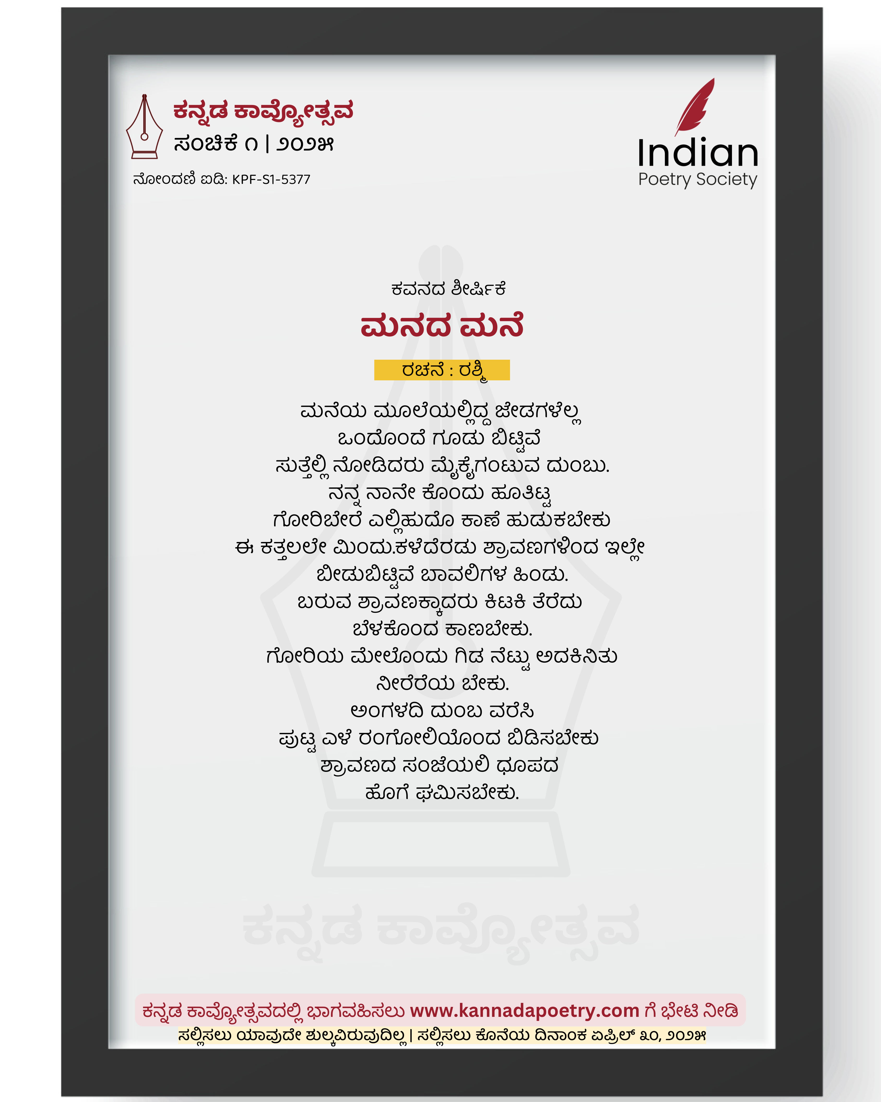 ನೋಂದಣಿ ಐಡಿ : KPF-S1-5377